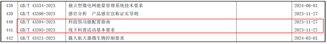11月27日,国家标准化管理委员会发布2023年第13号公告,由全国科普服务标准化技术委员会(以下简称科普标委会)归口上报的国家标准《科技馆功能配置指南》(GB/T 43394-2023)、《线下科普活动基本要求》(GB/T 43395-2023)正式发布实施。